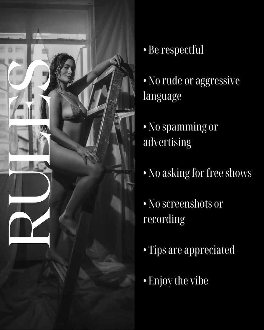 Pecorina, Ahegao, Zoccolo di cammello, Valutazione del cazzo, Ripresa della gonna da sotto, Twerk, Seghe con i piedi, Massaggio, Sculacciate, Ballo erotico, Cosplay, Ditalino, Spogliarello, Fumo, Giocattoli erotici, Nylon, Orgasmo, Spettacolo con olio, Tacchi, Topless, Dildo o Vibratore, Feticismo dei piedi, Istruzioni per sborrare, Pompino, Sborrata, Da bocca a culo, Linguaggio esplicito, Gola profonda, Umiliazione, Giochi di ruolo, Giocattoli anali, Giocattoli per capezzoli, Masturbazione, Tittyfuck, Hardcore, Donna sopra
